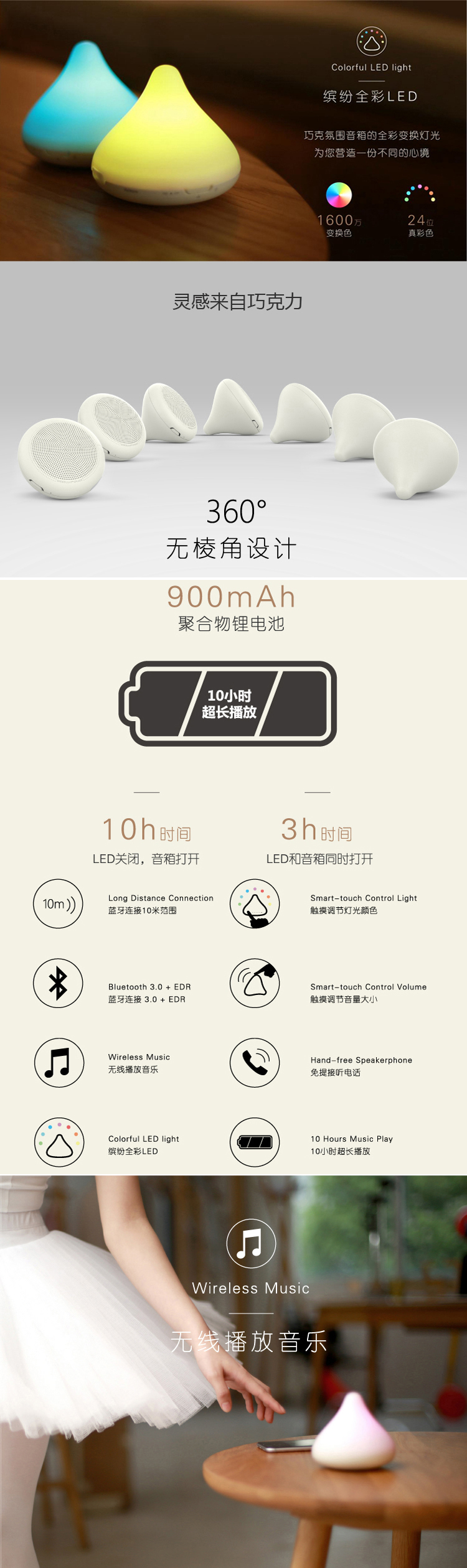 特别卖点: 时尚 极简设计 氛围变色灯 蓝牙免提音箱